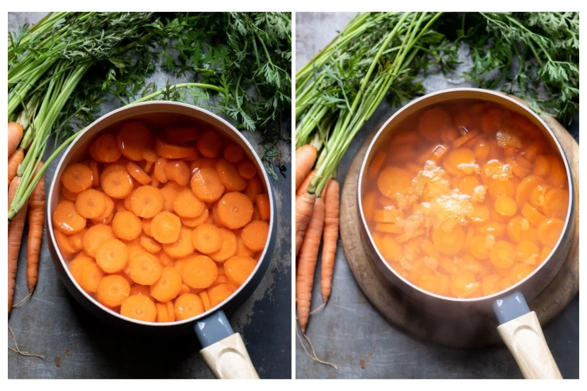 - في قدر كبير، ضعي الماء على نار متوسطة، ثم أضيفي الجزر واتركيه حتى ينضج تمامًا.
