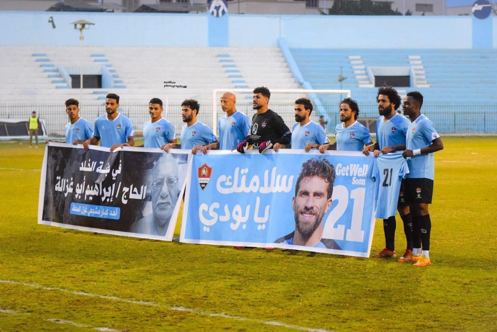وشهدت مباراة غزل المحلة أمام وادي دجلة، دعم لاعبي زعيم الفلاحين، لزميلهم عبد الرحمن بودي، بـ لافته تحفيزية، بعد تعرضه للإصابة في المباراة الماضية، بقطع كامل في الرباط الصليبي، وتضمنت اللافتة: سلامتك يا بودي.