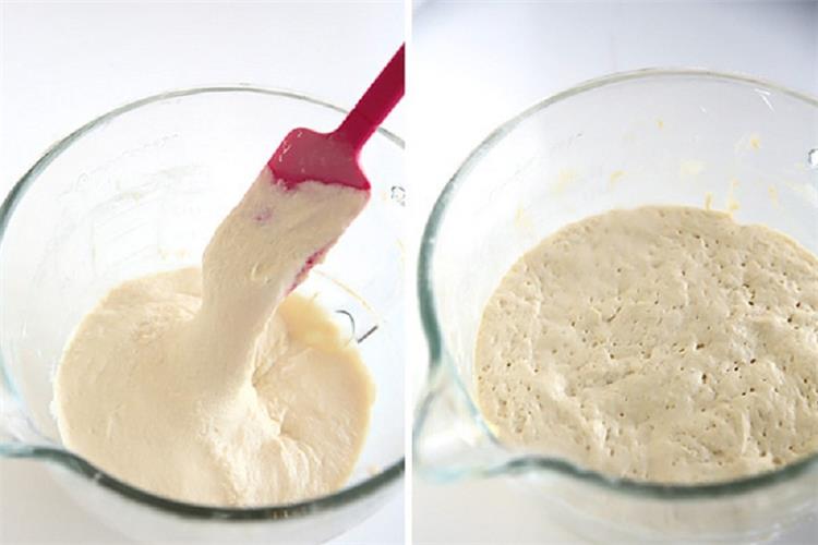 - في وعاء صغير، اخلطي ملعقة كبيرة من الدقيق، نصف كوب من الماء الدافئ، ملعقة صغيرة من الخميرة، وملعقتين صغيرتين من السكر.