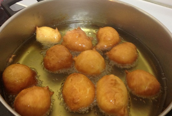 - الخطوة السادسة: نضع كرات العجينة في الزيت الساخن ونقلب حتى تصبح ذهبية اللون.