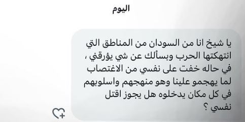 يا شيخ أنا في منطقة الحرب في السودان وعندي سؤال لو خفت على نفسي من الاغتصاب لما يهجموا علينا وهو أسلوبهم المتبع، بيجوز أقتل نفسي؟.. هكذا أصبحت الأسئلة الرائجة الأكثر تعبيرا عما يجري في السودان بعد اقتحام ميليشيا الدعم السريع ود مدني وارتكابها فظاعات بحق النساء اللاتي يواجهن واحدة من أبشع الجرائم بالحروب، وهي استخدام الاغتصاب كوسيلة من وسائل الحرب.