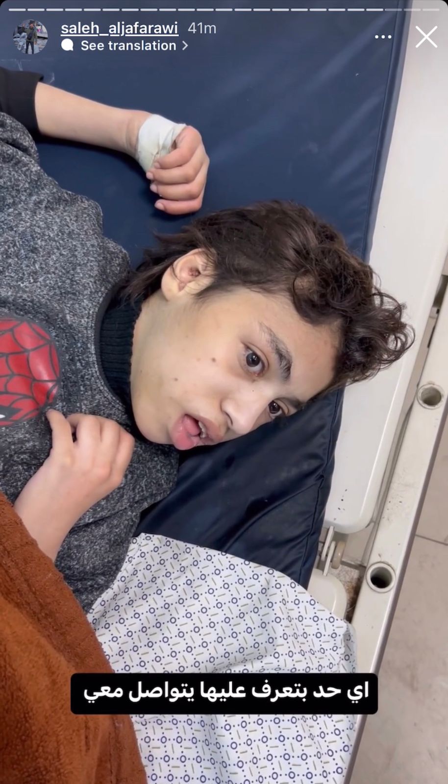 استغاثة جديدة لأحد أبطال غزة، نشرها صالح الجفراوي الصحفي الفلسطيني، طلب فيها عبر استوري من حسابه الرسمي على إنستجرام، بنجدة طفلة مجهولة الهوية، من ذوي الاحتياجات الخاصة، موجودة بأحد المستشفيات الفلسطينية بلا أهل أو جيران.