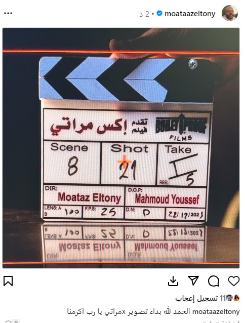 ونشر معتز التوني صورة الكلاكيت الخاص بفيلم إكس مراتي، عبر حسابه الرسمي بموقع إنستجرام، وعلق: الحمد لله بدء تصوير فيلم X مراتي، يا رب اكرمنا.