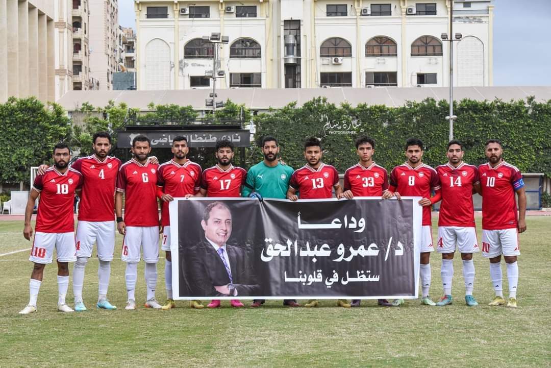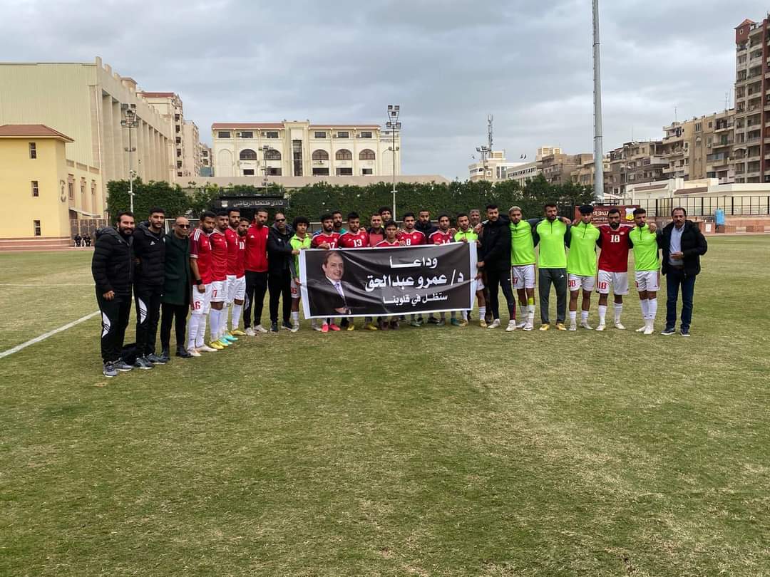 وحرص لاعبوا قبل بداية اللقاء على رفع لوحه تحمل كلمة وداعا الدكتور عمرو عبدالحق أسطورة نادي النصر الذي رحل عن عالمنا منذ أيام قليلة.