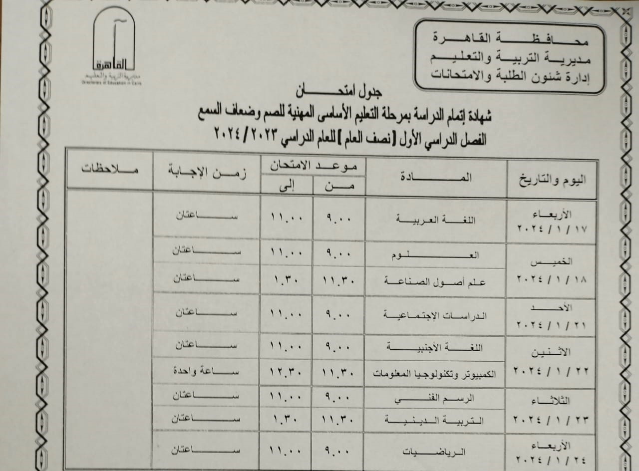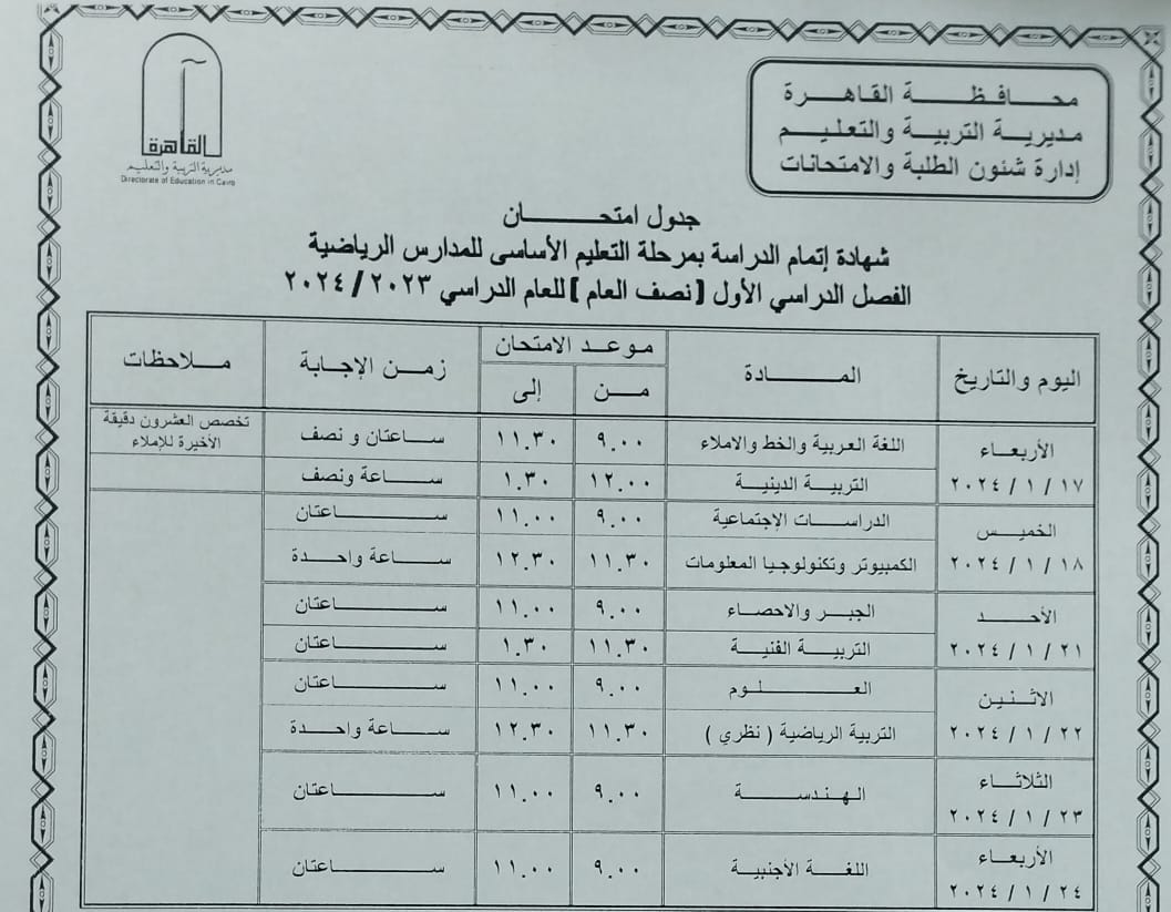 محافظ القاهرة يعتمد جداول امتحانات الفصل الدراسي الأول 2024