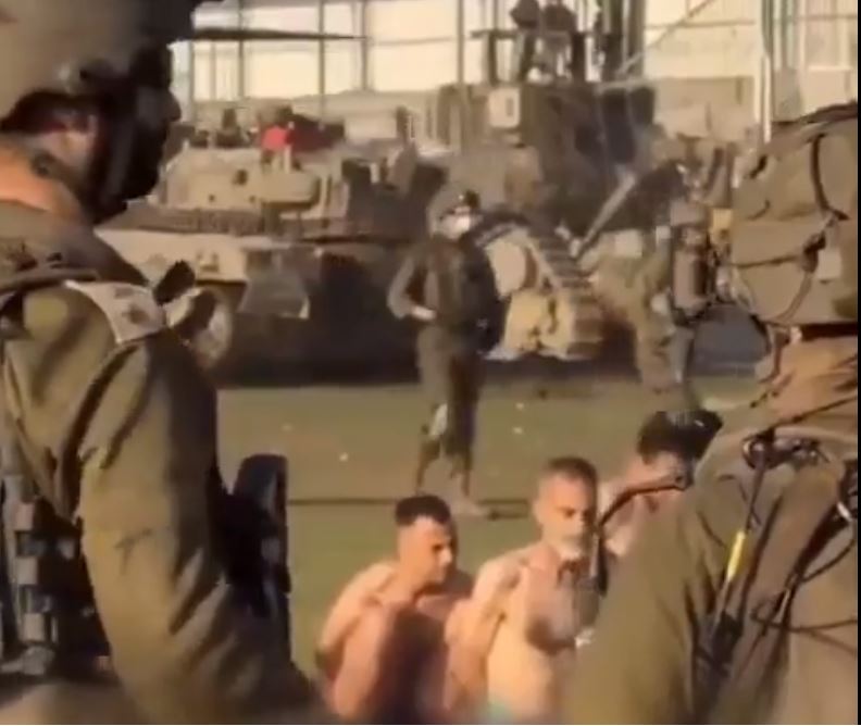 وتداول مستخدمو مواقع التواصل الاجتماعي صورًا، تظهر اصطحاب قوات الاحتلال لعشرات الفلسطينيين الشباب والأطفال والشيوخ، مجردين من ملابسهم سوى ما يستر عوراتهم، في ظل ما يشهده القطاع من انخفاض بدرجات الحرارة.