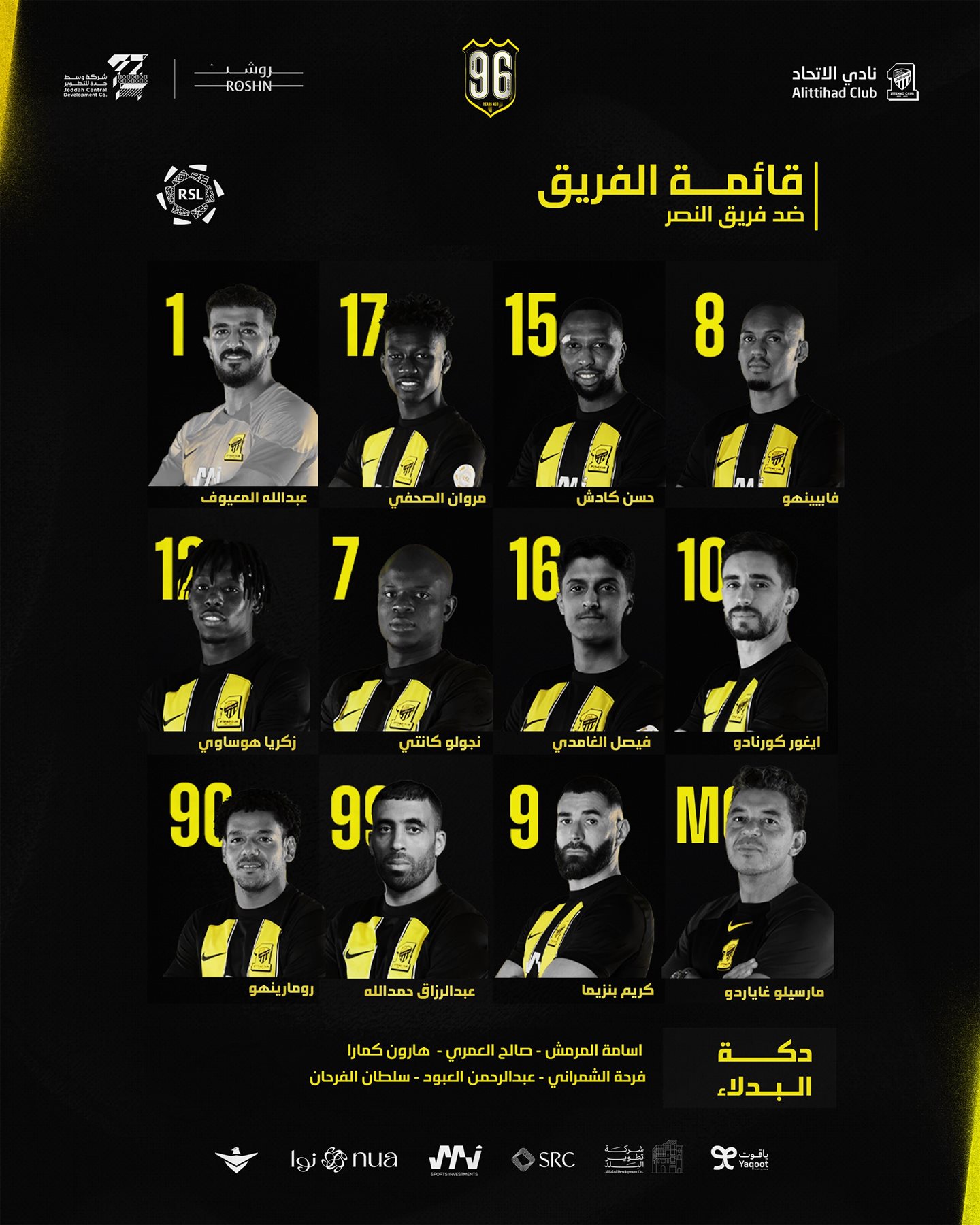 وجاء تشكيل اتحاد جدة للمباراة على النحو التالي:-