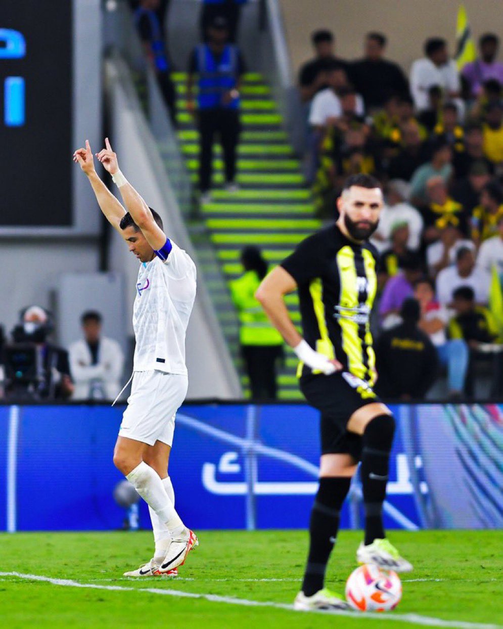 مباراة اتحاد جدة أمام نظيره النصر كانت تجمع بين صديقي الأمس في فريق ريال مدريد الإسباني وهم الثنائي كريستيانو رونالدو لاعب فريق النصر أمام كريم بنزيما لاعب فريق اتحاد جدة، وتمكن رفقاء رونالدو من التغلب على بنزيما.