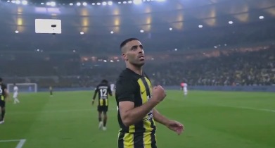 أما المشهد الثاني احتفال المغربي عبد الرازق ق حمد الله مهاجم اتحاد جدة بعد تسجيله هدفين أمام فريقه السابق النصر، مما أثار غضب الجمهور النصراوي وقام بالهتاف ضده عقب فوز النصر.