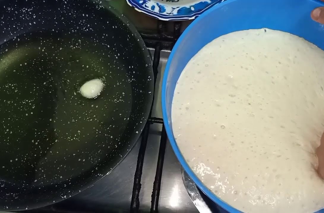 | لابد من تفريغ الهواء من عجينة الزلابية بعد التخمير وقبل القلي. |