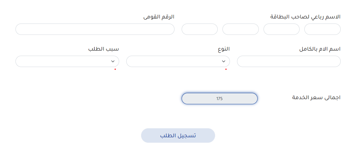 - كتابة الاسم رباعي لصاحب البطاقة، وكتابة الرقم القومي المدون بشهادة الميلاد.