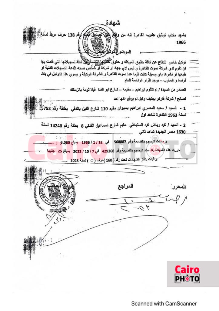 جمعية المؤلفين والملحنين تحسم حقوق ملكية أغاني أم كلثوم لشركة صوت القاهرة | مستندات