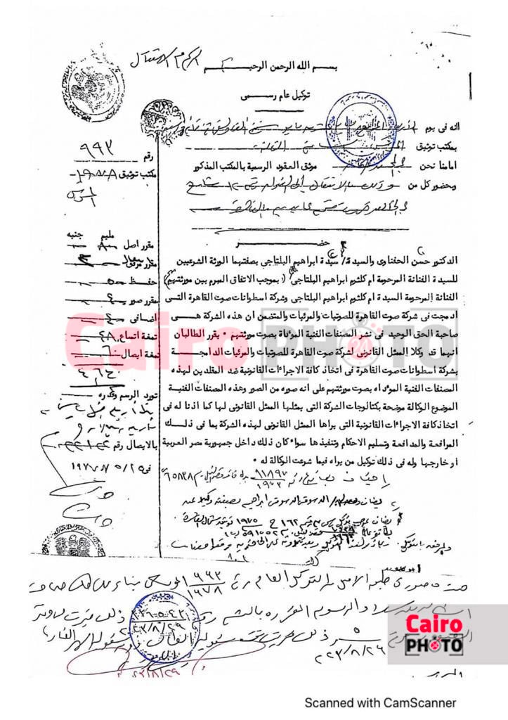 وأضاف البيان: واستباح الخصم أن يتمسك بحكم قضائي يفسخ علاقته العقدية بشركة صوت القاهرة للصوتيات والمرئيات، وهو حكم ينفي صفة السيد/ محسن جابر وشركاته التي خلفته في التعامل بصفته موزعًا للتسجيلات الصوتية للسيدة أُم كُلثوم، ويتجاهل الخصم إقرار موثق من السيدة أُم كُلثوم، بحسم الملكية لصالح شركة صوت القاهرة للصوتيات والمرئيات، وهو إقرار أيده إقرار لاحق موثق من الجيل الأول من ورثة السيدة أُم كُلثوم، ونؤكد أن السيد محسن جابر، ألف لي الحقائق وتفسير الأحكام القضائية حسب هواه وتجاهل إقرارات رسمية موثقة بيد السيدة أُم كُلثوم، والجيل الأول من ورثتها، ويتهرب من المثول أمام النيابة العامة للتحقيق معه في جرائم تزوير واستعمال محررات مزورة، لعلمه بخطل مسعاه وسلامة ما تحت يد شركة صوت القاهرة للصوتيات والمرئيات، من مستندات من بينها الحكم القضائي البات سالف الذكر بملكيتها لتسجيلات السيدة أُم كُلثوم، وهذا كله يبرر تحذير الغير من التعامل مع السيد/محسن جابر، أو أي من شركاته في شأنها لتفادي ملاحقته القانونية، جنائيًا ومدنيًا.