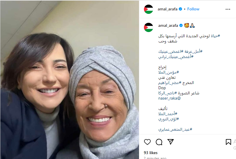 وشاركت أمل عرفة، صورة من كواليس مسلسلها الجديد تجمع بينها وبين الفنانة مني واصف، عبر حسابها الشخصي بموقع تبادل الصور والفيديوهات القصيرة انستجرام، وعلقت كاشفة اسم شخصيتها قائلة: حياة لوحتي الجديدة التي أرسمها بكل شغف وحب.