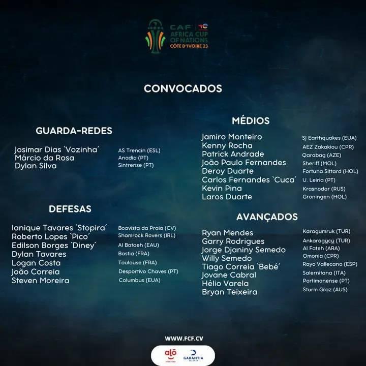 أعلن بوبيستا بريتو المدير الفني لمنتخب كاب فيردي، القائمة النهائية المشاركة في بطولة كأس الأمم الإفريقية 2023 بكوت ديفوار.