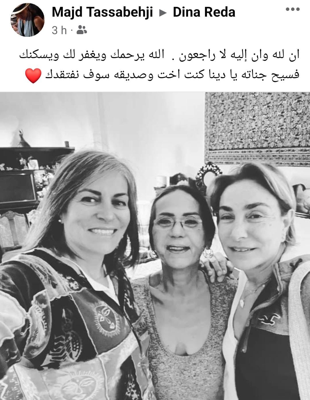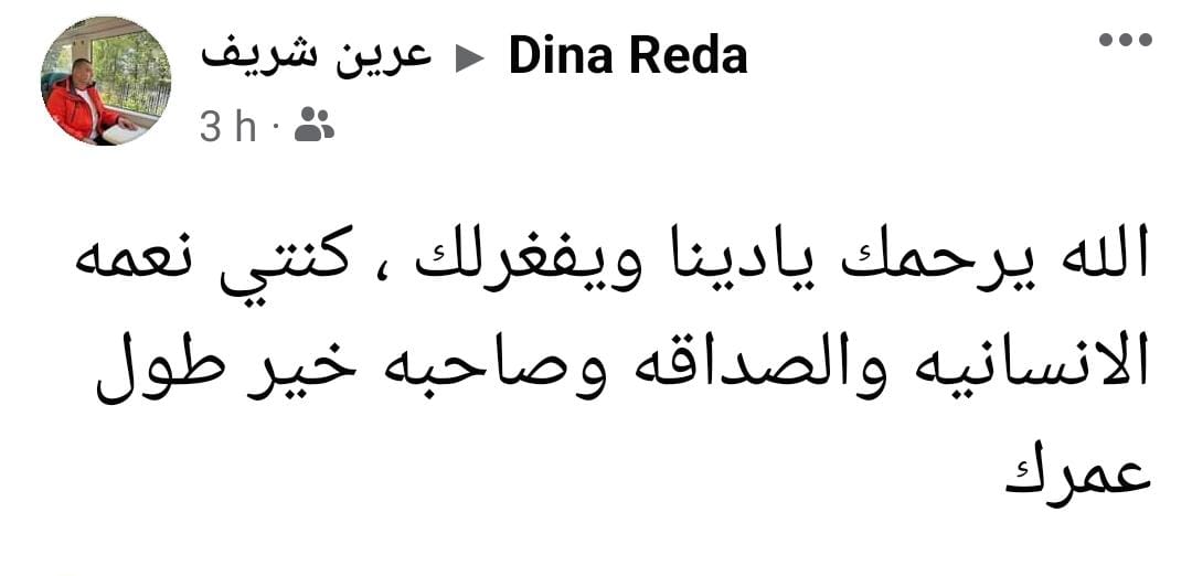 ونعاها أصدقائها عبر صفحتها الشخصية على فيس بوك، فقال عرين شريف: الله يرحمك يا دينا ويغفر لك، كنتي نعمة الإنسانة والصديقة وصاحبة خير طول عمرك.