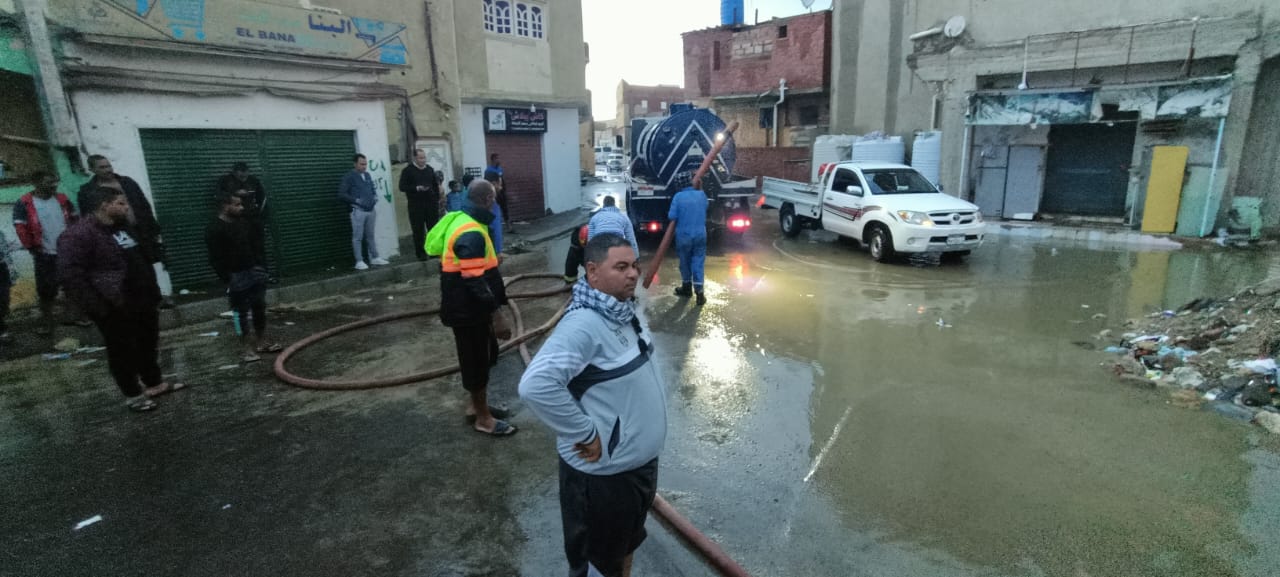 فيما دفعت شركة مياه الشرب والصرف الصحي بالبحر الأحمر بسيارات ومعدات الشركة لسحب مياه الأمطار المتراكمة، وإزالة آثار الأمطار من مناطق تجمعات المياه.
