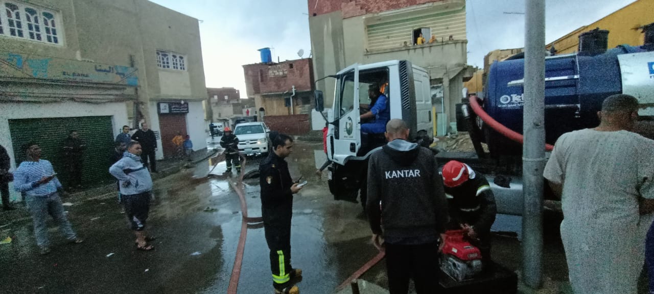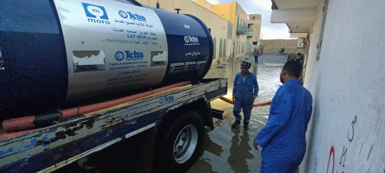 الدفع بسيارات ومعدات الشركة لسحب مياه الأمطار المتراكمة