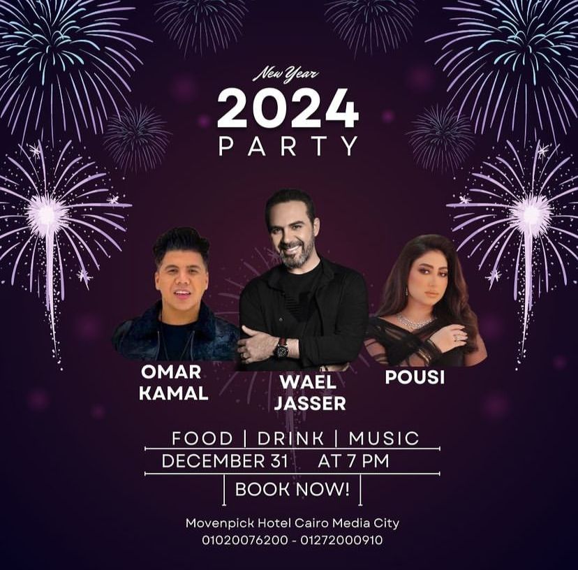 كما سيكون هناك حفل لإيهاب توفيق يوم رأس السنة 2024 في cairo Jazz Club، علما أن المطرب إيهاب توفيق كان أيضا في حالة حداد على أطفال غزة، وأول ظهور له سيكون في حفل رأس السنة.