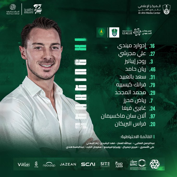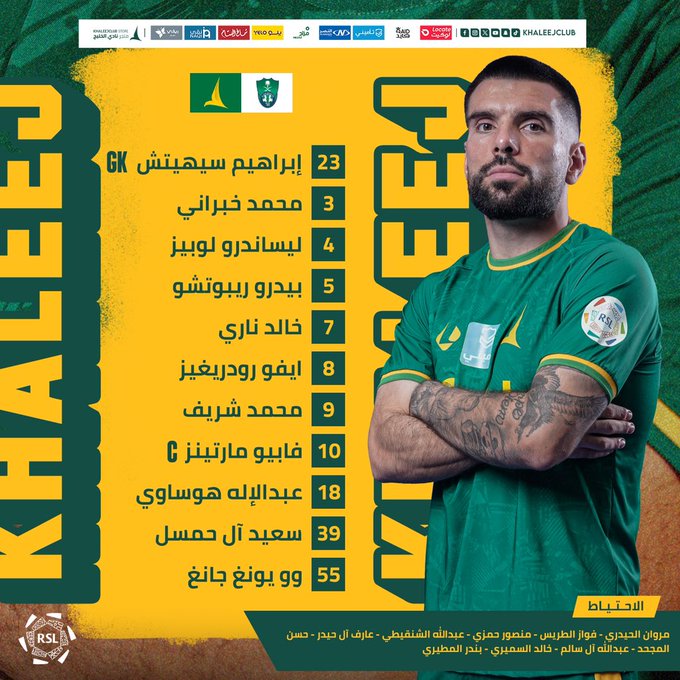 بينما على الجانب الآخر، أعلن المدير الفني لفريق أهلي جدة السعودي ماتياس يايسله التشكيل الرسمي الذي سيخوض به لقاء فريق الخليج السعودي، لحساب الجولة التاسعة عشر من عُمر مسابقة دوري روشن السعودي.