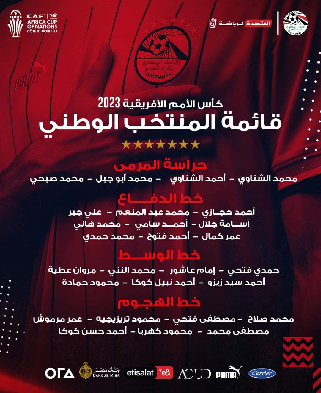 خرج 28 لاعبًا من قائمة منتخب مصر النهائية المشاركة في كأس الأمم الإفريقية 2023 بكوت ديفوار، والتي أعلنها البرتغالي روي فيتوريا المدير الفني للفراعنة منذ قليل.