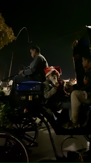 وأرتدى الأطفال ملابس بابا نويل بالطاقية الحمراء والذقن الابيض المستعار وطافوا شوارع الأقصر بعربات الحنطور المزينة بالبالونات.