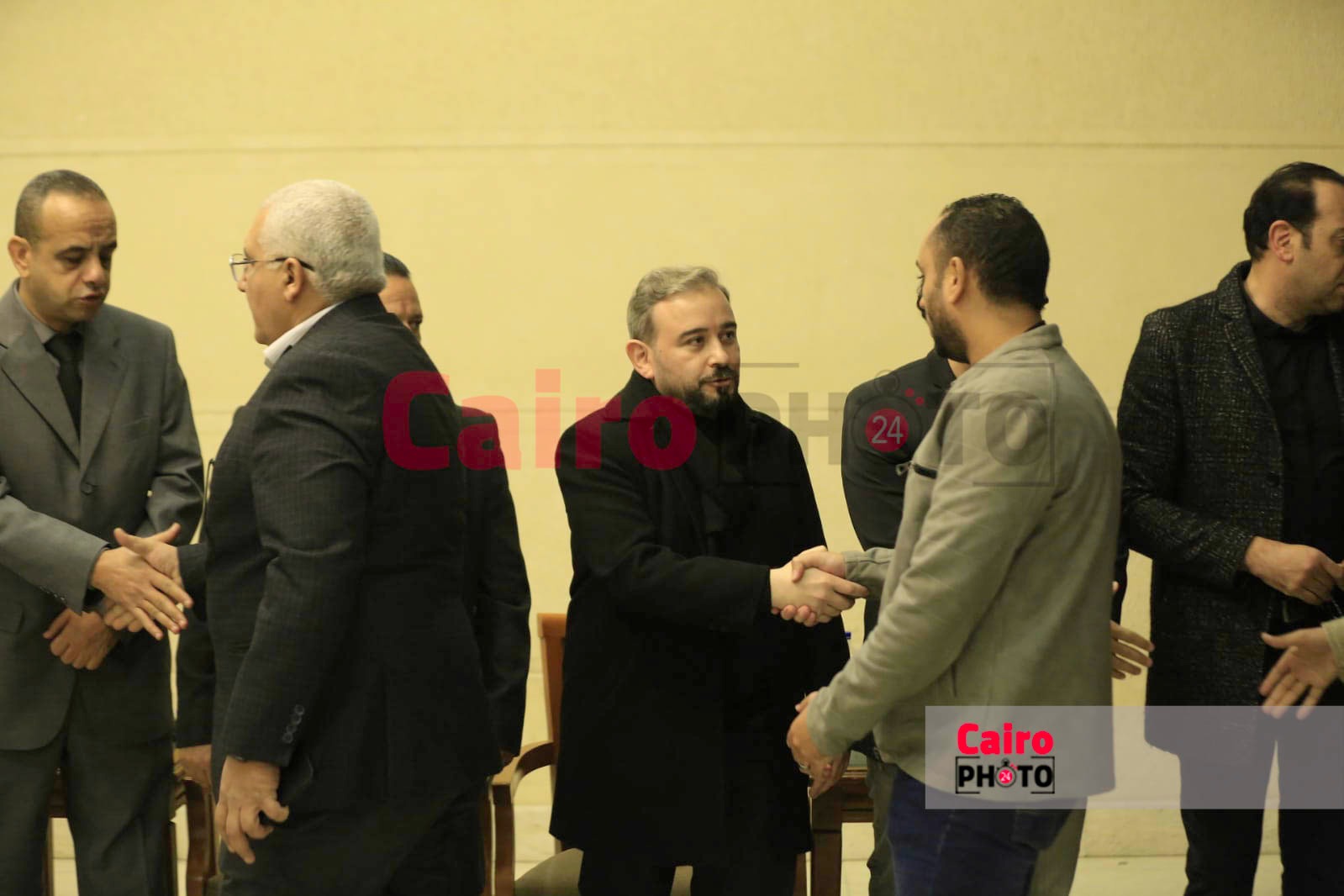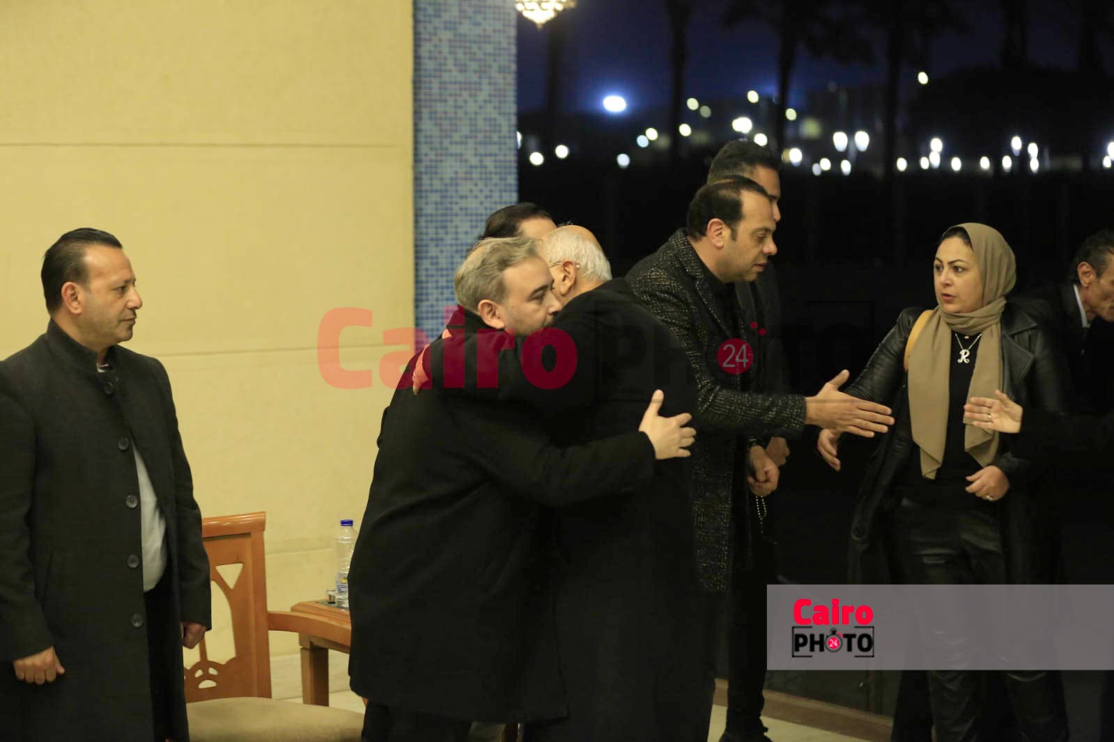 تامر حسين وعزيز الشافعي ومصطفى عاطف أول الحضور في عزاء والدة الموزع أحمد عادل
