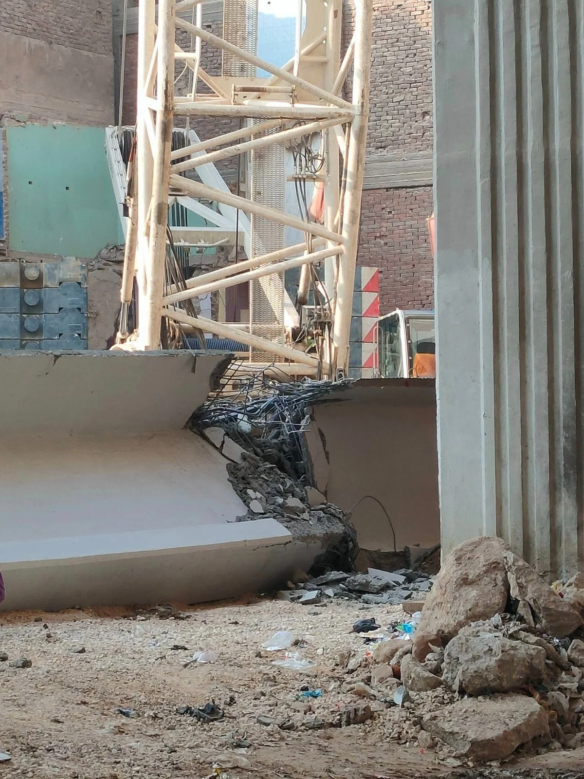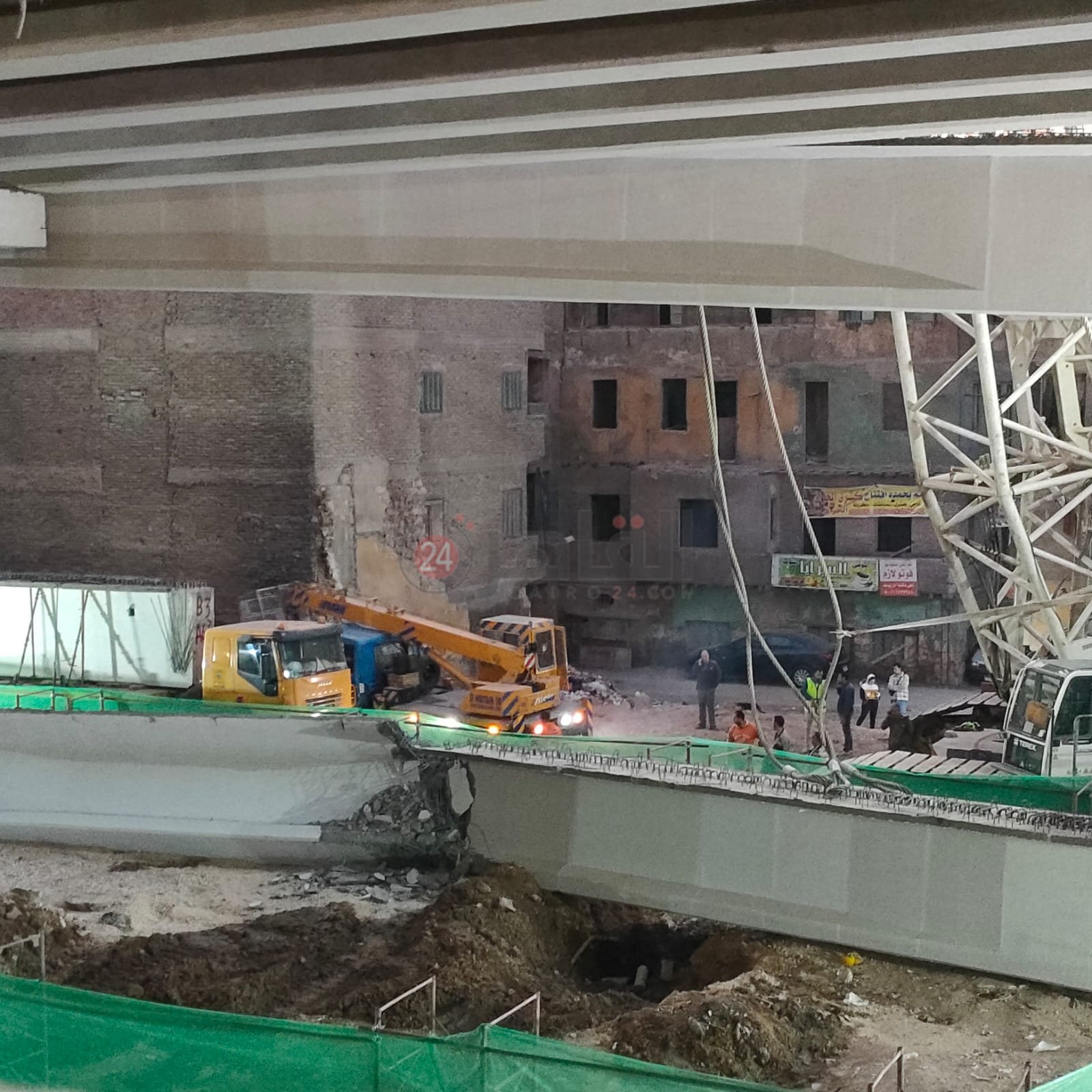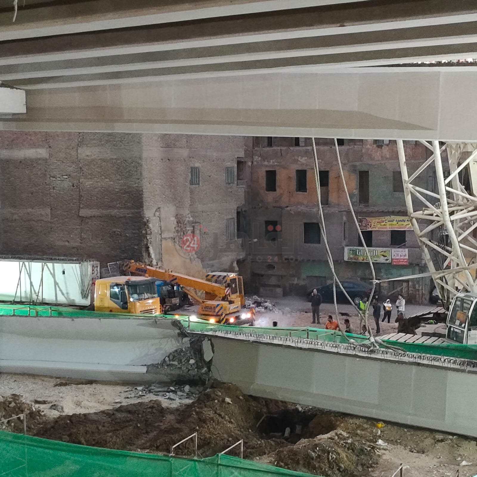 انهيار جزء خرساني من محور الفريق كمال عامر