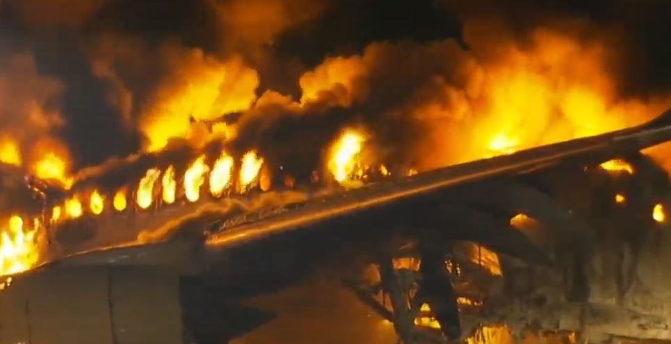 كارثة اشتعال طائرة في مطار هانيدا بـ اليابان
