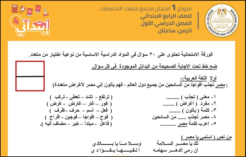 ننشر نماذج امتحانات الصف الرابع الابتدائي الترم الاول 2024 والأسئلة المتوقعة