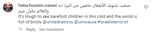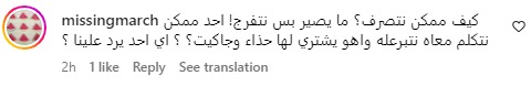 وعلقت إحدى المتابعات، باسم missingmarch: كيف ممكن نتصرف..ما يصير بس نتفرج..احد ممكن نتكلم معاه نتبرعله وهو يشتري لها حذاء وجاكيت..اي احد يرد علينا.
