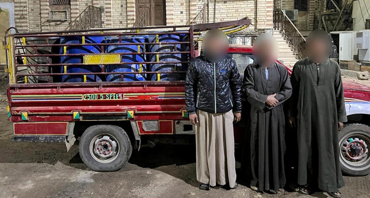 كما تم ضبط سائق ومزارع – مقيمان بمحافظة أسوان حال استقلالهما سيارة نقل بدائرة مركز شرطة إسنا محمل عليها 10 براميل سولار بإجمالي 1،500 طن سولار بدون أوراق أو فواتير.