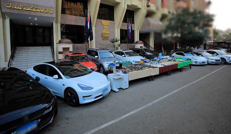 وأوضحت التحريات الأولية أنه عقب تقنين الإجراءات تم استهدافهم وأمكن ضبط 7 أشخاص، عناصر التشكيل المتواجدين بالبلاد بنطاق محافظتي القاهرة والجيزة وبحوزتهم كمية لمخدر الحشيش الاصطناعي "البودر" وزنت 46 كيلو جرام – كمية لمخدر الآيس "الشابو" وزنت 2،500 كيلو جرام – كمية من المواد الخام المستخدمة في تصنيع المواد المخدرة – عدد من الأدوات المستخدمة في تصنيع المواد المخدرة – 4 بنادق آلية - 26 طبنجة – بندقية خرطوش – 6 فرد خرطوش – 2 سلاح ناري "مقروطة" محلية الصنع – 6 طبنجة صوت - عدد من الطلقات مختلفة الأنواع – أدوات ومعدات وأجزاء تصنيع الأسلحة النارية – مبالغ مالية كبيرة عملات محلية وأجنبية – 11 سيارة مختلفة الأنواع – كمية من المصوغات الذهبية وزنت أكثر من 8،5 كيلو جرام – 6 ساعة يد – لاب توب – 15 هاتف محمول.