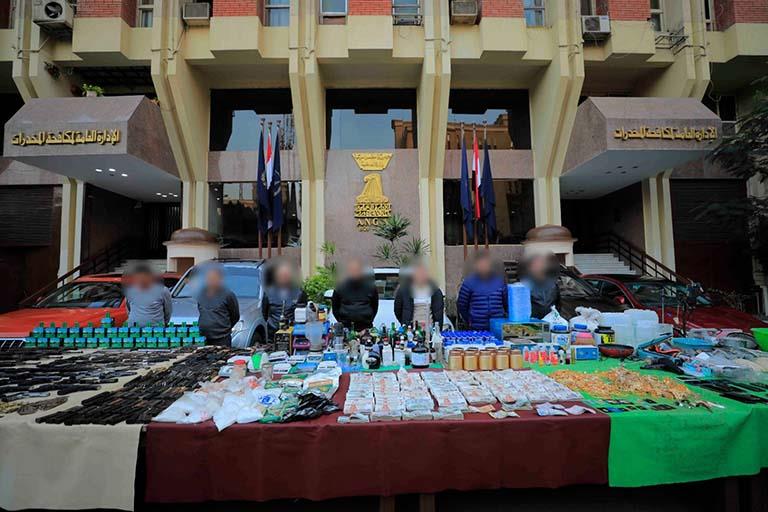 رصدت الإدارة العامة لمكافحة المخدرات بقطاع مكافحة المخدرات والأسلحة والذخائر غير المرخصة بالتنسيق مع الأجهزة الأمنية المعنية نشاط تشكيل عصابي شديد الخطورة مكون من 10 أشخاص، لعدد 8 منهم معلومات جنائية، وثلاثة منهم حاليًا خارج البلاد، أحدهم يحمل جنسية إحدى الدول تخصصوا في جلب وتصنيع وإعادة تدوير المواد المخدرة وخاصة مخدر الحشيش الإصطناعي البودر، وإدارتهم ورشة لتصنيع الأسلحة النارية والذخائر غير المرخصة وترويجها على عملائهم، مُتخذين من محافظتي القاهرة والجيزة مسرحًا لمزاولة نشاطهم غير المشروع، فضلًا عن قيامهم بغسل الأموال الناتجة عن تجارتهم غير المشروعة في محاولة لإصباغها بالصبغة الشرعية.