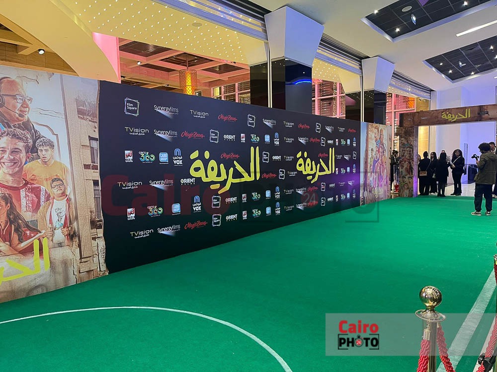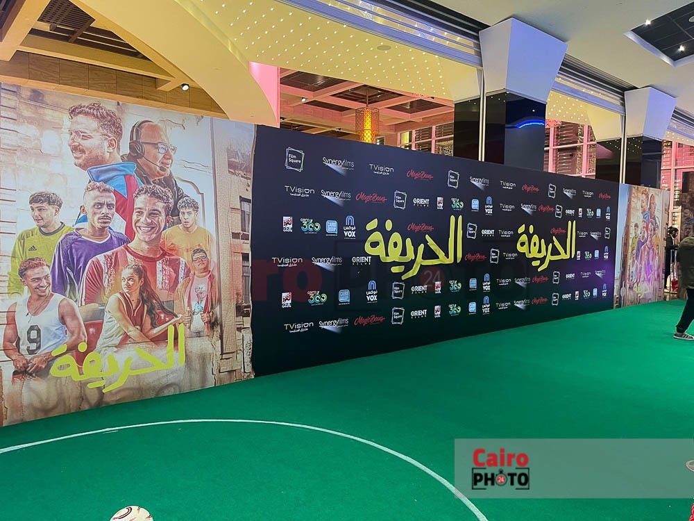 على شكل ملعب.. التحضيرات النهائية للعرض الخاص لفيلم الحريفة بطولة نور النبوي | صور