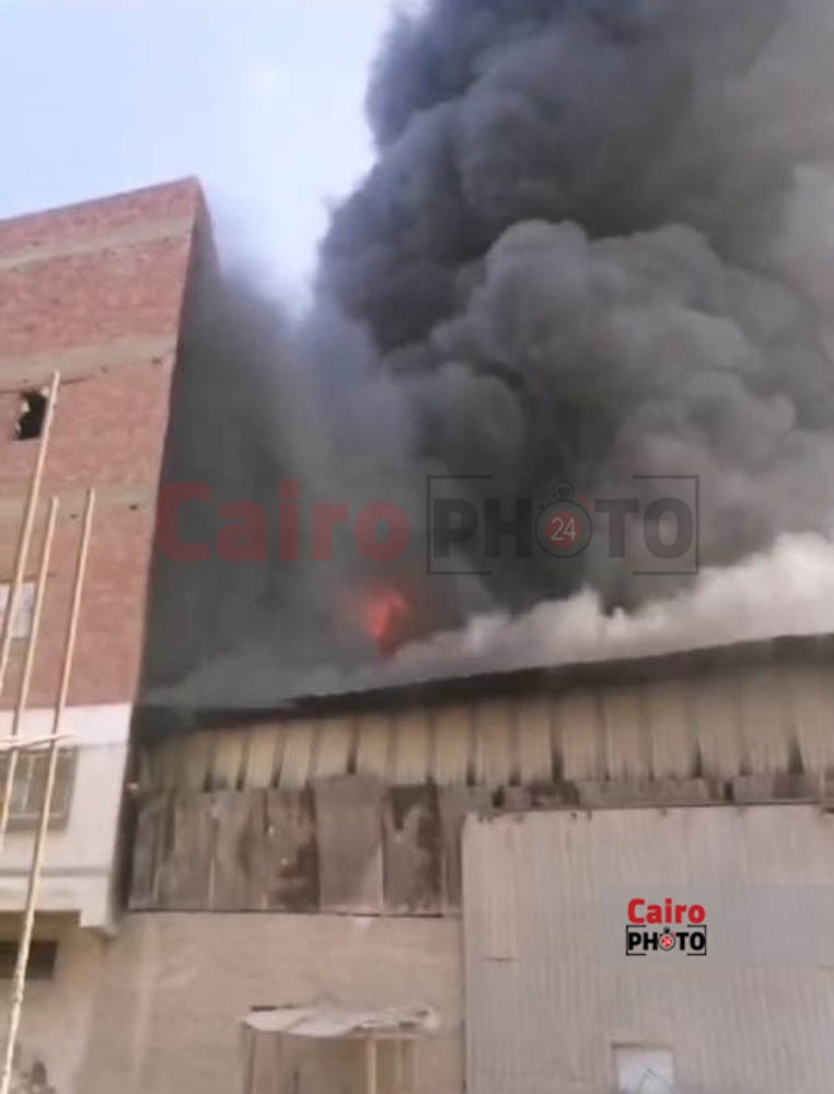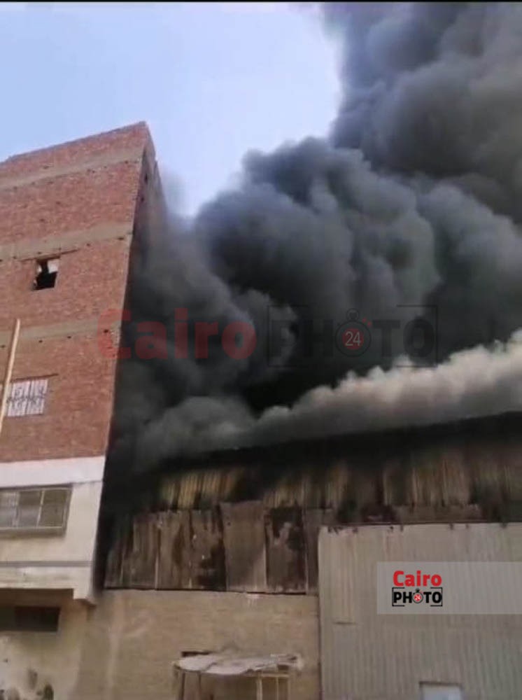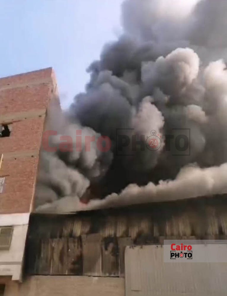 نشوب حريق داخل مصنع أقمشة أمام سنترال النزهة بجسر السويس| صور