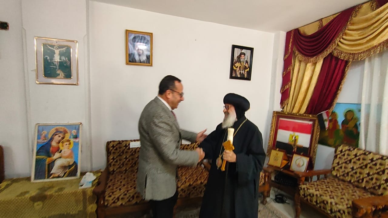 جاء هذا خلال زيارة المحافظ الى مطرانية شمال سيناء في ضاحية السلام بالعريش لتهنئة الأخوة الأقباط بعيد الميلاد المجيد، حيث كان فى استقباله الأنبا قزمان أسقف سيناء الشمالية وعدد من القساوسة ورجال الدين المسيحي.