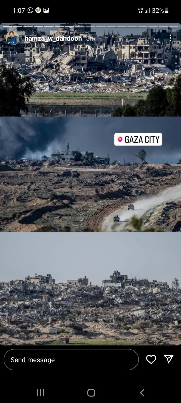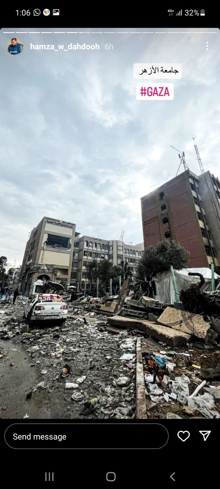 وكان المنشور الأخير الذي وضعه حمزة هو صورة لوالده وائل الدحدوح يدعوه فيها لعدم الاستسلام والبقاء صامدًا وقويًا، متعهدًا له بتعويض كبير من الله عز وجل على كل ما تحمله من فقد ومأساة ونكبة، وكل ما يتحمله من ألم جسدي نتيجة لاستهدافه برصاص الاحتلال من قبل، وألم نفسي نتيجة لفقدانه لزوجته وأحفاده في قصف إسرائيلي مؤخرًا.