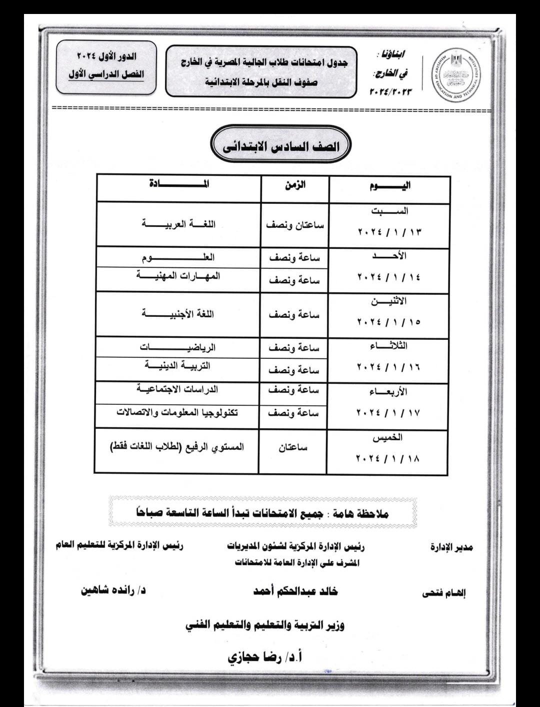 التعليم تعلن جداول امتحانات طلاب الخارج 2024 التيرم الأول