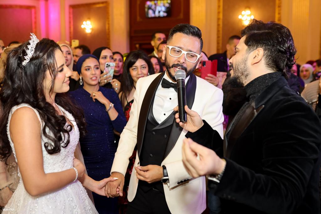 وحضر الفرح عدد من المطربين، والذي كان من أبرزهم الفنان عبد الباسط حمودة ومصطفى حجاج، وكما حرص أصدقاء العروسين على الحضور والاحتفال معهم في أجواء تملؤها الفرح والبهجة.