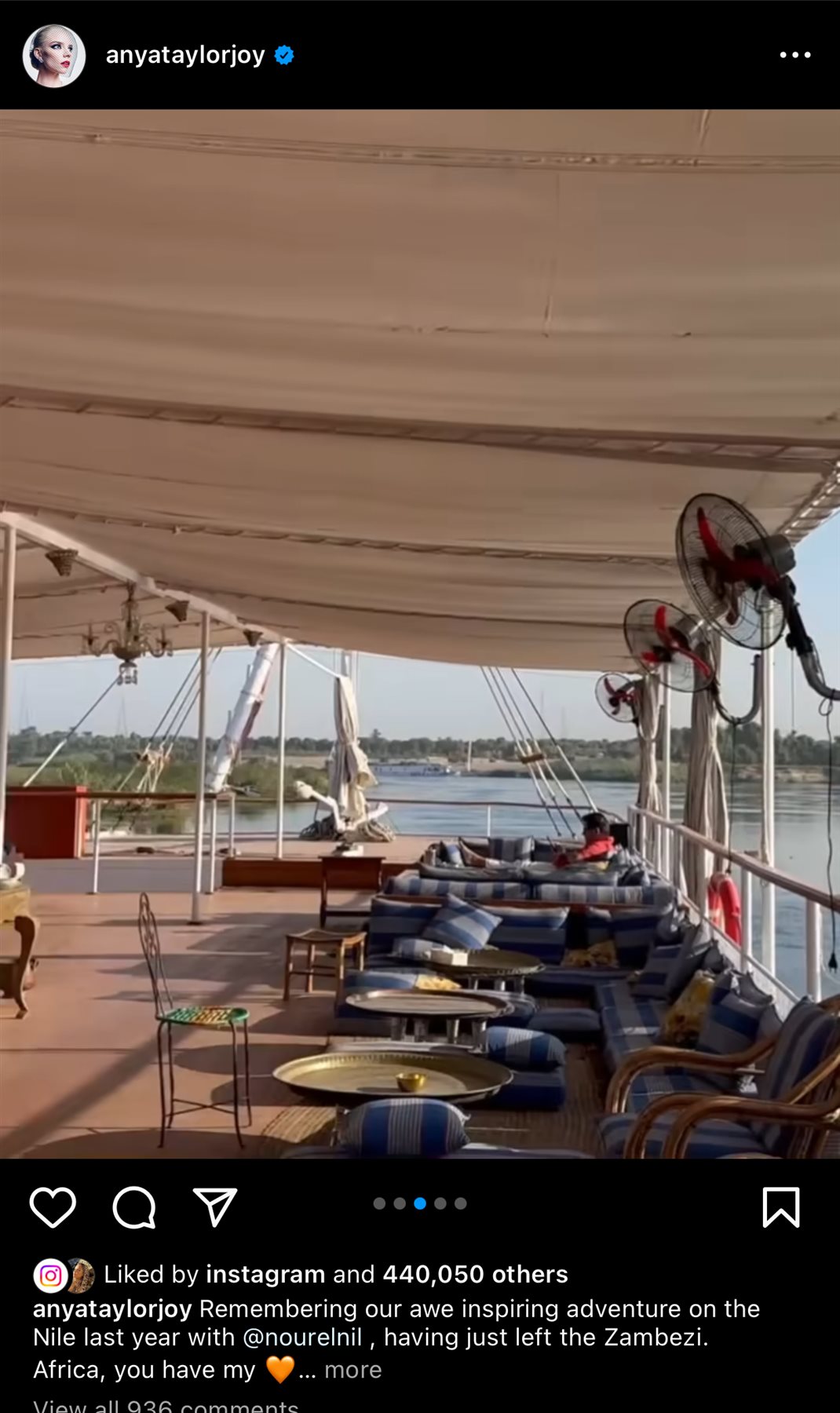 ونشرت أنيا صور لها توثق سعادتها بالسباحة في نيل الأقصر، وجولتها بين معابدها ، ونشرت فيديو لغروب الشمس وهي على المركب في الأقصر وفيديو ثالث وهي تستمع لمرشد سياحي أثناء الشرح بأحد المعابد.