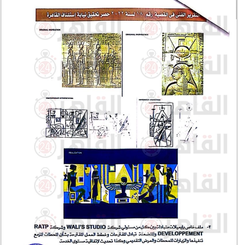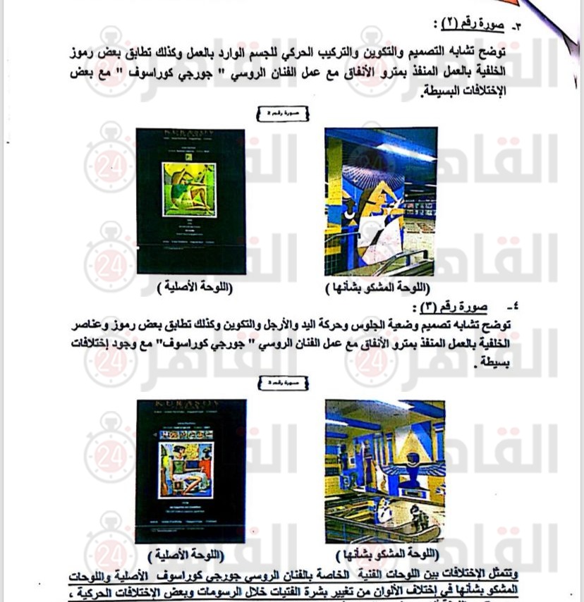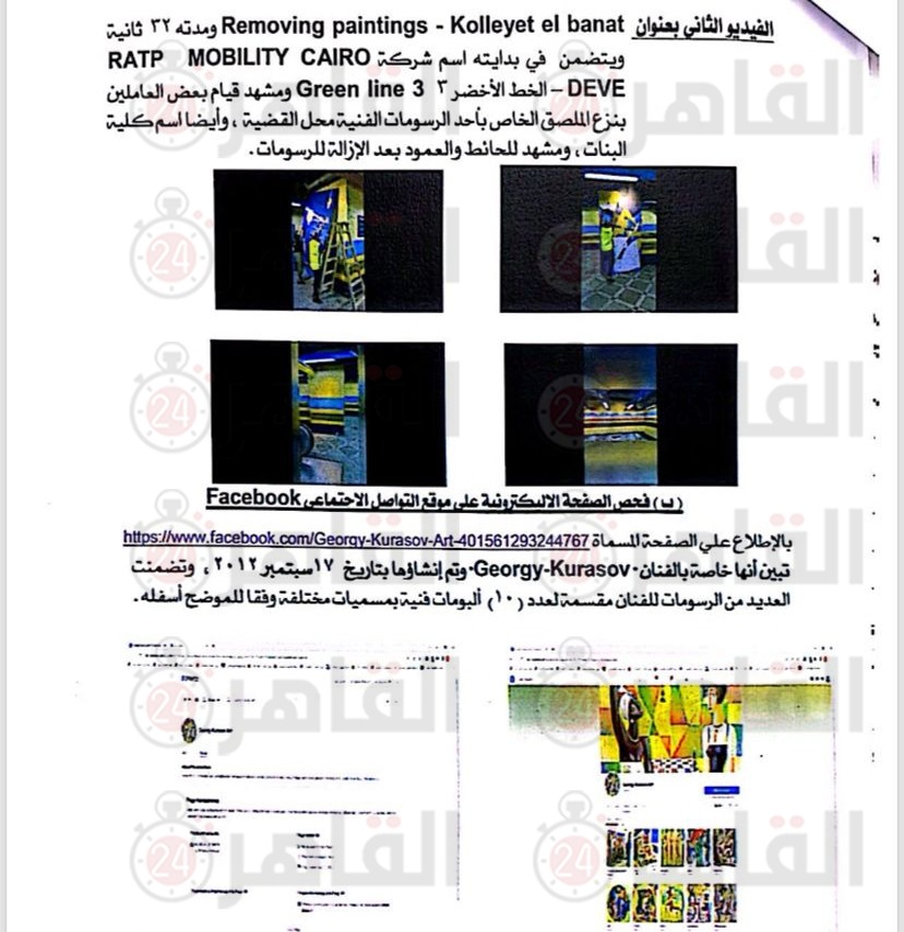 ثانيًا: الرسومات محل الشكوى وعددها 3 الموضحة تفصيلًا في سياق الرد على التكليف الثالث من هذا التقرير، المنسوبة للفنانة التشكيلية غادة والي، والتي تم وضعها بمحطة المترو - كلية البنات - وفقًا للفيديو المرفق تفتقد إلى الابتكار والطابع الشخصي الذي يضفي عليها الأصالة والحماية كونها منسوخة ومقلدة للرسومات الأصلية للفنان الروسي Georgy-Kurasov الأسبق منها في النشر، وذلك من حيث التصميم وبناء كتلة الجسم والتركيب الحركي وتفاصيل الأزياء، وتصميم وضعية الجلوس وحركة اليد والأرجل وبعض رموز وعناصر الخلفية مع بعض الاختلافات البسيطة المتمثلة في اختلاف الألوان من تغيير بشرة الفتيات خلال الرسومات وبعض الاختلافات الحركية.