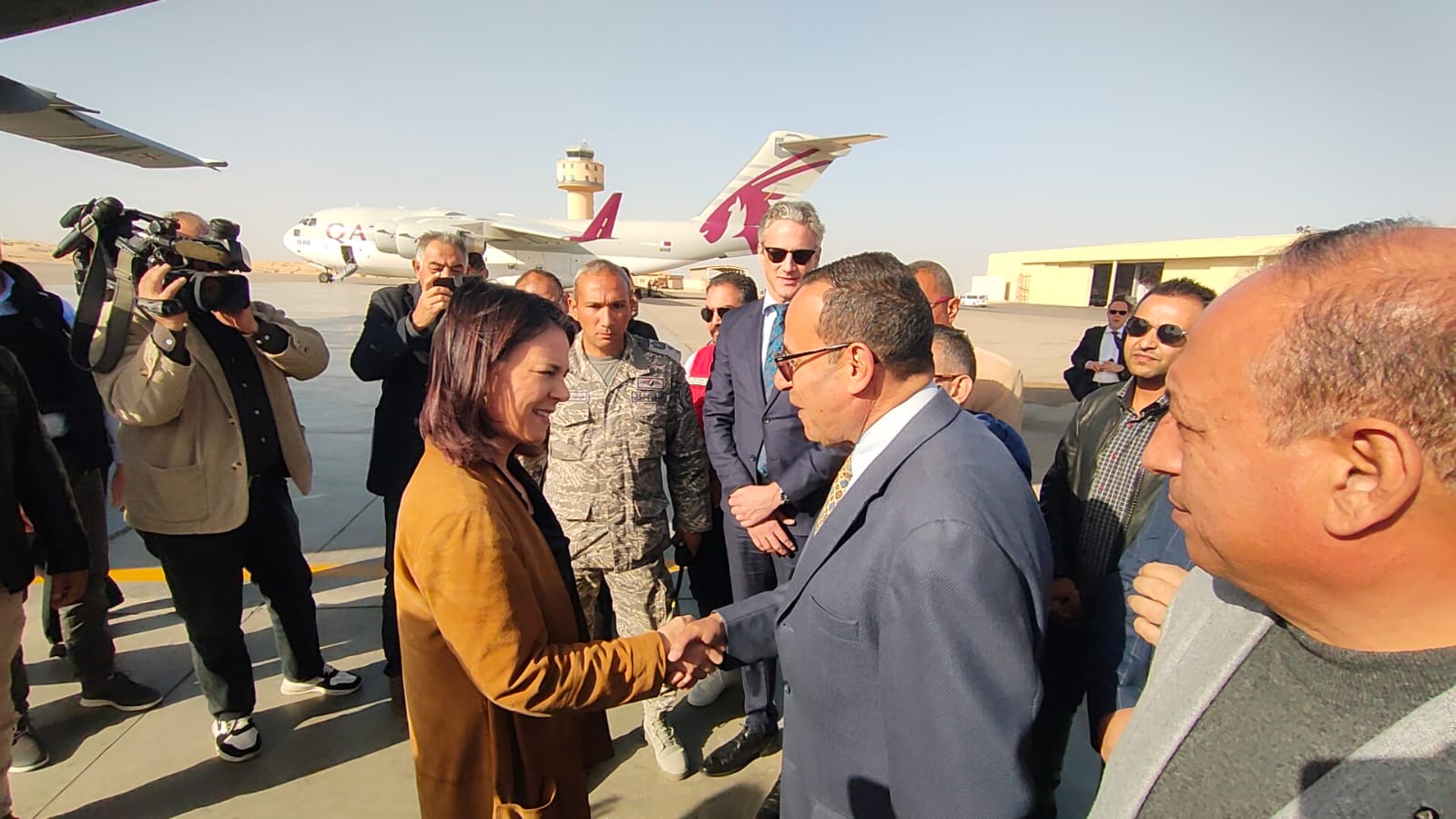كان اللواء محمد عبد الفضيل شوشة محافظ شمال سيناء، استقبل أنالينا بيربوك وزيرة الخارجية الألمانية خلال وصولها إلى مطار العريش الدولي، على متن طائرة قادمة من القاهرة، في حضور اللواء مصطفى محمد مصطفى رئيس الإدارة المركزية لمكتب المحافظ، لطفي غيث مدير العمليات في الهلال الأحمر المصري، الدكتور طارق شوكه وكيل وزارة الصحة بالمحافظة.