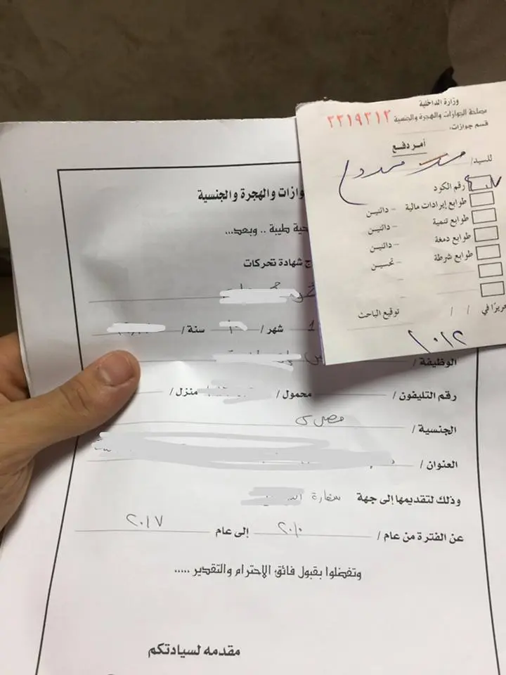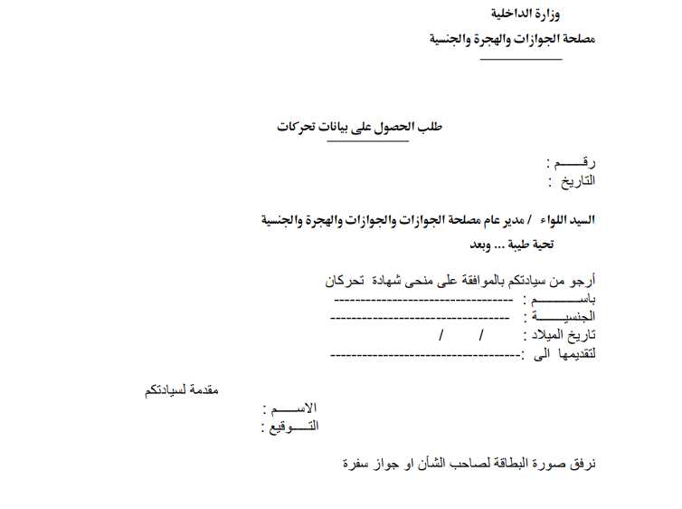 - اطلب استمارة طلب شهادة تحركات ومن ثم تسجيل البيانات المطلوبة بشكل صحيح.
