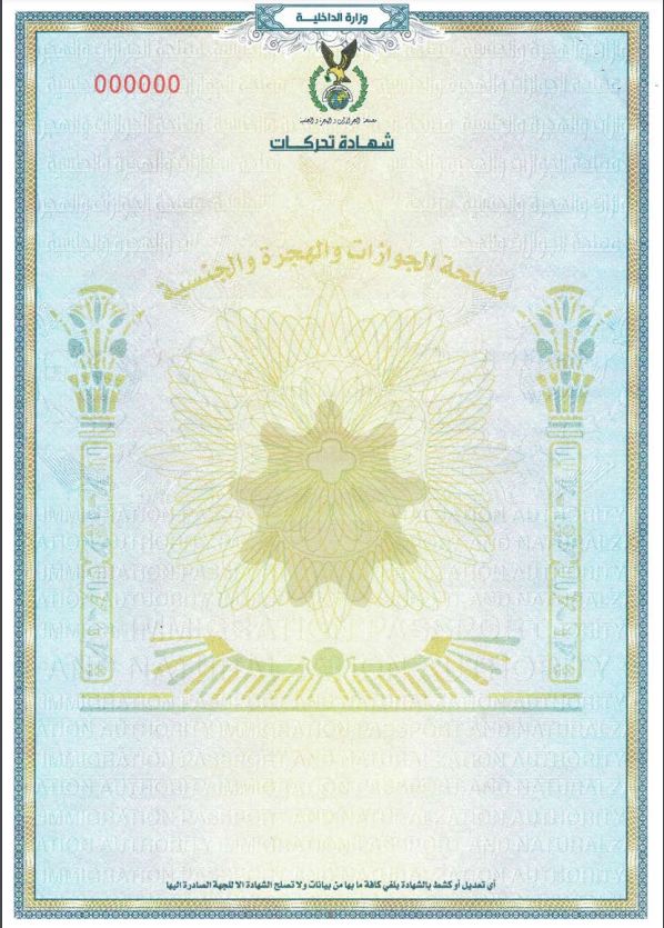 وفيما يلي شكل شهادة التحركات الرسمية: