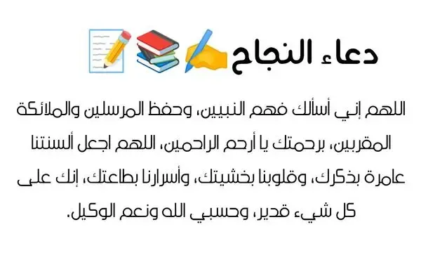 - اللهم ارزقني نجاحًا في كل أمر، ونيلًا لكل مقصد، وارزقني القمة في درجات العلم.
