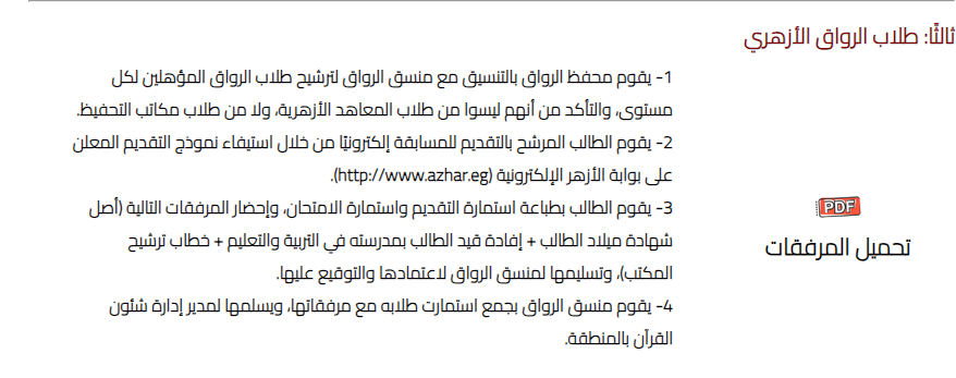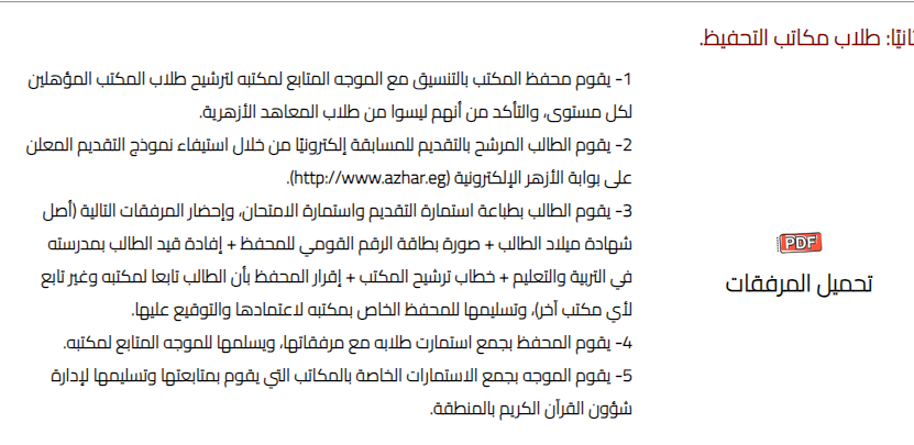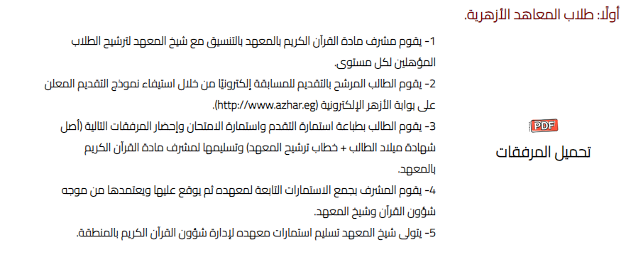 - ويمكنكم الاطلاع على المزيد من شروط مسابقة الأزهر الشريف لحفظ القرآن الكريم 2024 من هنــــــــــا.