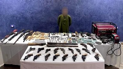 عقب تقنين الإجراءات تم ضبطه وبحوزته 17 قطعة سلاح ناري عبارة عن 2 بندقية آلية، 11 بندقية خرطوش، 4 فرد محلي، 24 خزينة، عدد من الطلقات مختلفة الأعيرة، مبلغ مالي من متحصلات بيع الأسلحة النارية والذخائر، وبمواجهته اعترف بنشاطه الإجرامي.