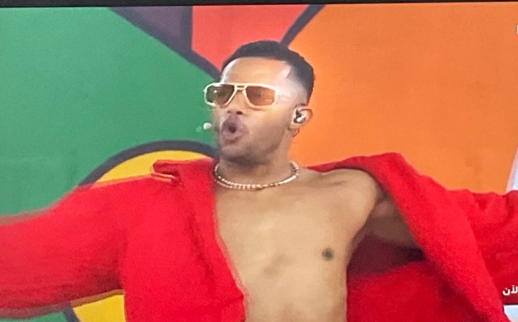 وشهد حفل الافتتاح حضور قوي ومميز لـ الفنان المصري محمد رمضان بعد تقديمه فقرة غنائية على ملعب الحسن وتارا الذي يشهد حفل الافتتاح.