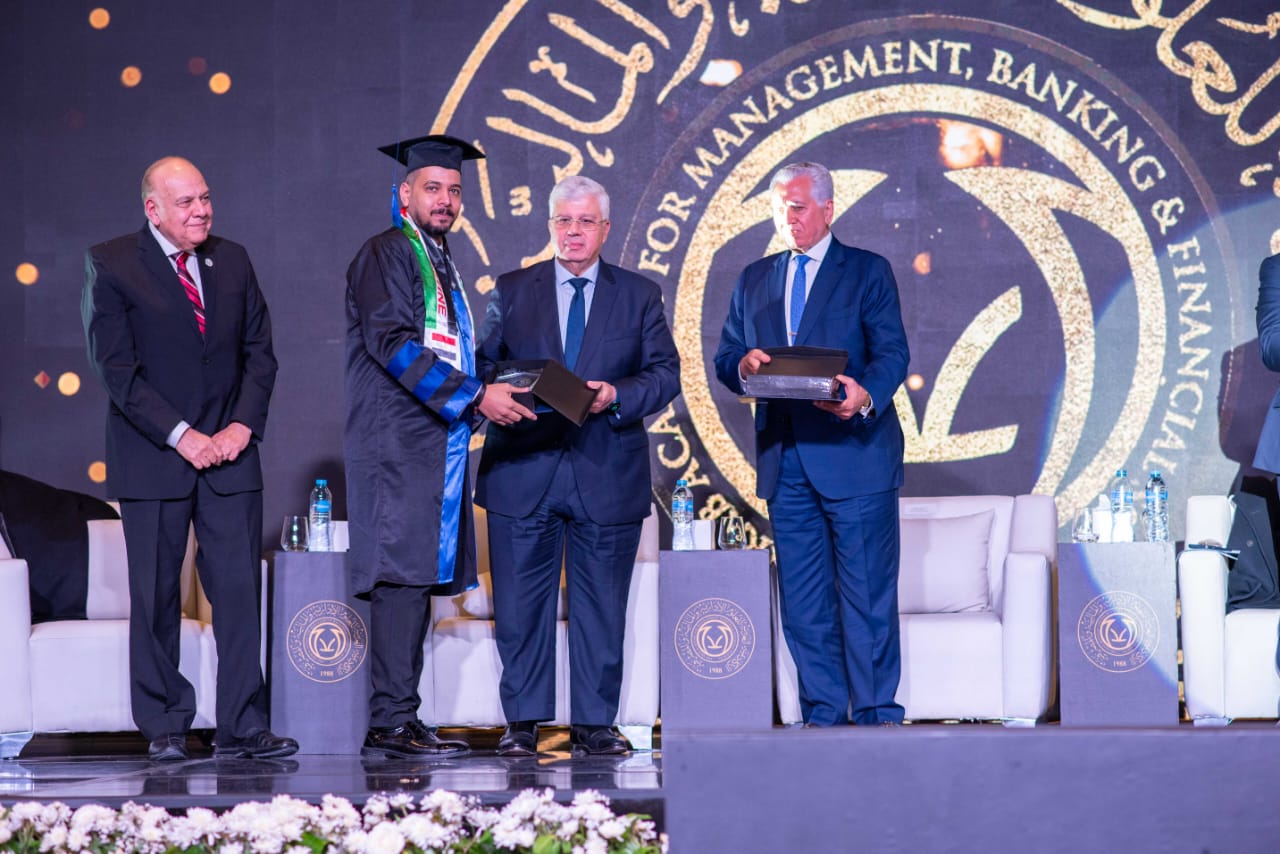 ومن جانبه، أعرب الدكتور مصطفى هديب، عن سعادته بتخرج طلاب الدراسات العليا بالأكاديمية، متمنيًا لهم المزيد من التفوق والتميز، مشيرًا إلى أن هذا التخرج سيكون بمثابة اختبار حقيقي لقدراتهم على تحمل مسئولية تشكيل مُستقبل مُشرق، لافتًا إلى أن الأكاديمية العربية للعلوم الإدارية والمالية والمصرفية تعُد إحدى المنظمات المتخصصة في التعليم والتدريب والاستشارات والبحوث والدراسات، وتعمل تحت مظلة جامعة الدول العربية في إطار العمل العربي المشترك ومنظماتها المتخصصة، لافتًا إلى أن مجلس أمناء الأكاديمية يضم نُخبة من محافظي البنوك المركزية، ورؤساء البنوك الإقليمية والدولية في المنطقة العربية، بالإضافة إلى رئيس اتحاد المصارف العربية، موضحًا أن الأكاديمية تخرج منها العديد من الشخصيات العامة والبارزة من مختلف الدول العربية.